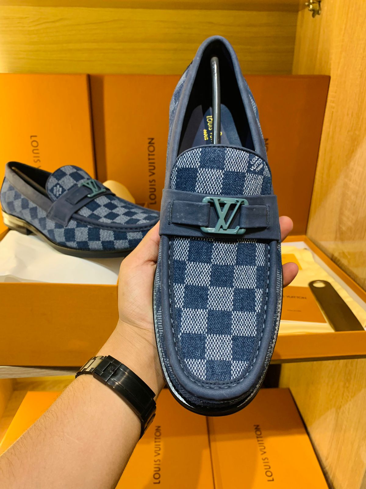 Louis.Vuitton Blue Check Major Loafers